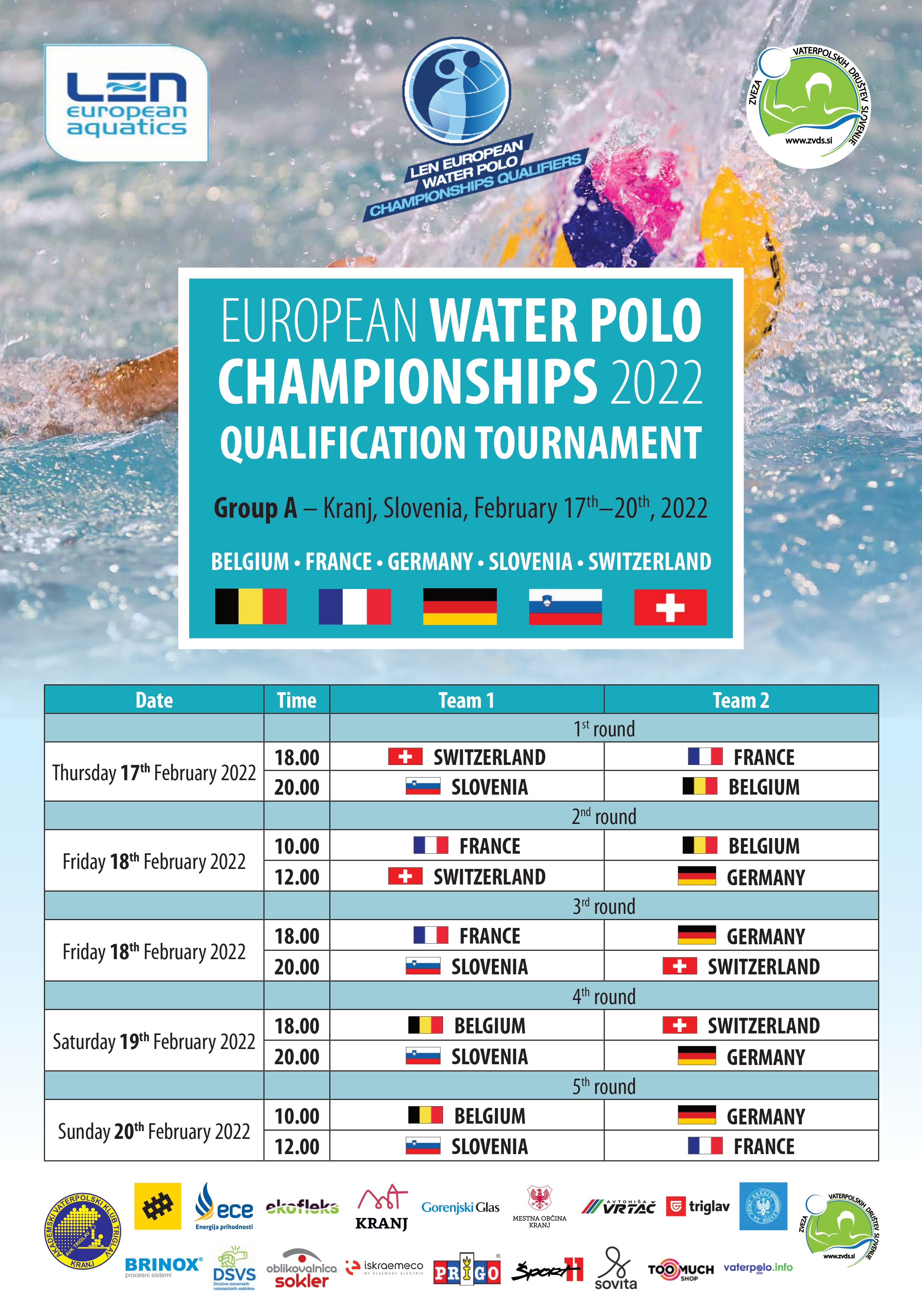 Povezava do podrobnosti o turnirju: https://zvds.si/european-water-polo-championships-2022-qualification-tournament/